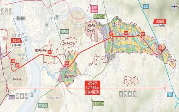 📌 강동하남남양주선은 서울 강동구에서 시작해 하남시와 남양주시를 연결하는 노선으로, 총연장 17.59km의 중량전철로 구성될 예정이에요.