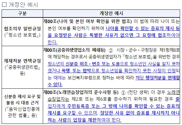이번 개정안은 나이 확인 과정에서의 마찰을 최소화하고, 사업자가 신분 확인을 요구할 수 있는 권리를 강화했어요. 또한, 청소년이 고의로 법 위반 행위를 유발한 경우, 사업자에 대한 면책 근거를 마련했다는 점이 큰 특징이에요.