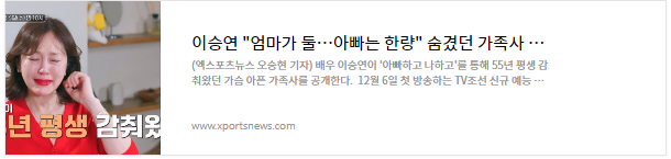 안녕하세요. 무엇입니다. 오늘은 배우 이승연 씨의 가슴 깊은 이야기를 함께 나눠보려고 해요. 최근 이승연 씨가 TV조선의 새 예능 프로그램 '아빠하고 나하고'에 출연해, 그녀의 가족사와 아버지에 대한 복잡한 감정을 공개했다고 하는데요, 이에 대해 자세히 알아볼까요? 🤔 오늘도 뉴스 기사를 통해 세상을 알아보겠습니다. 자세한 내용은 기사 본문을 확인해 주세요!