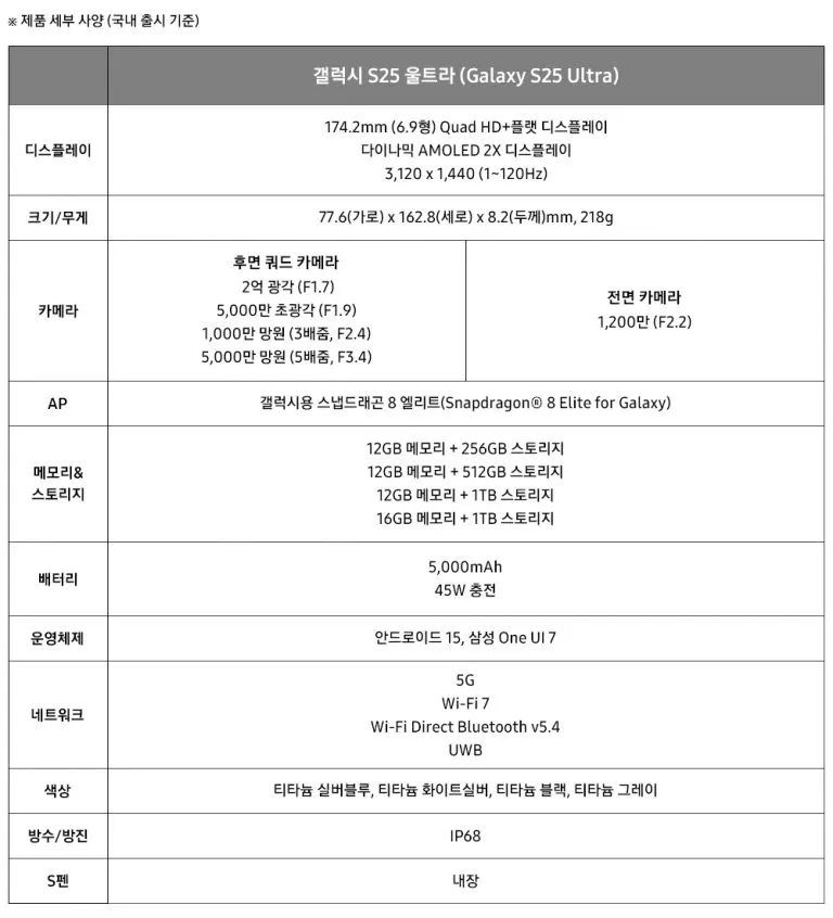 | 📱 S25 울트라 사양 | 📱 S25 플러스 사양 | 📱 갤럭시 S25 사양 |